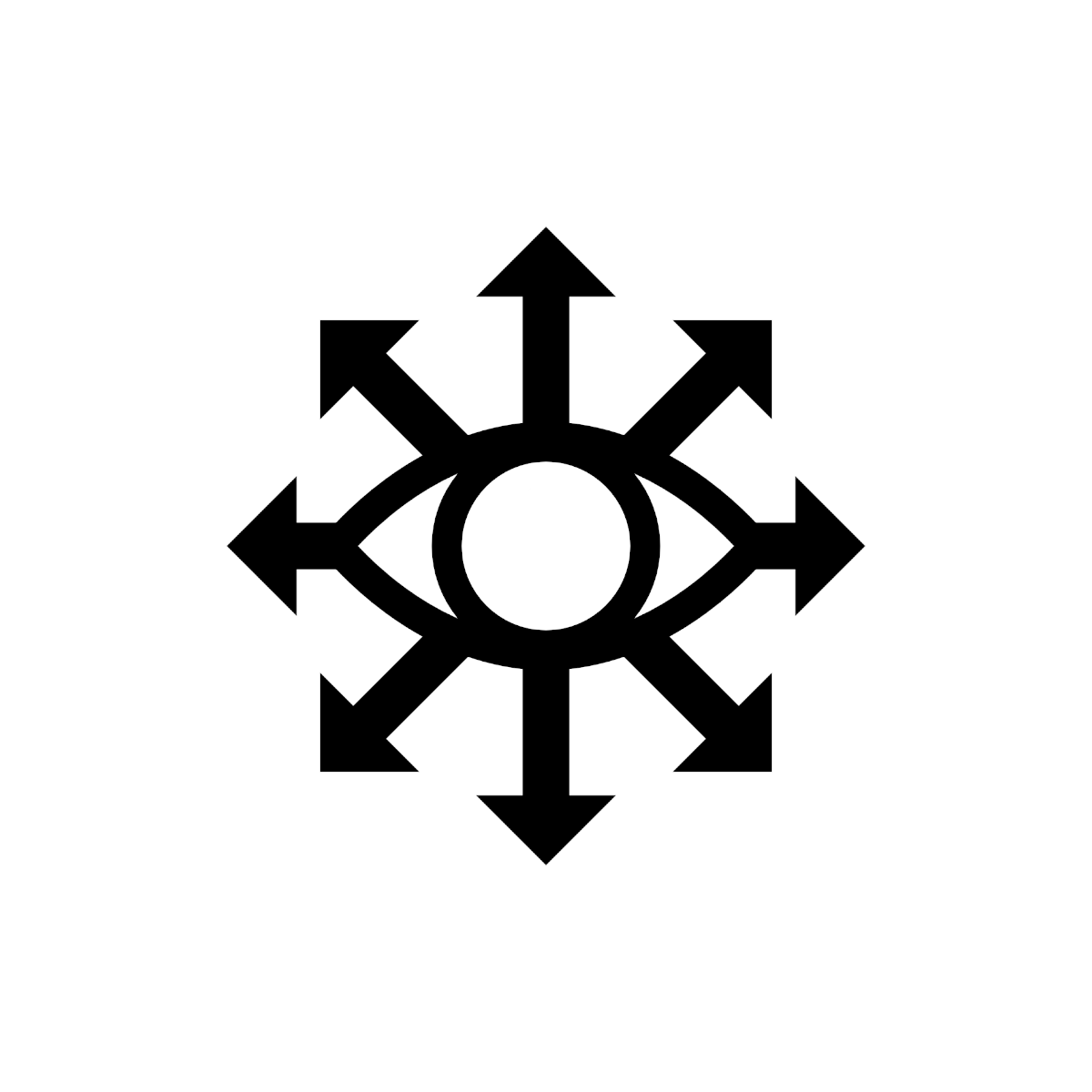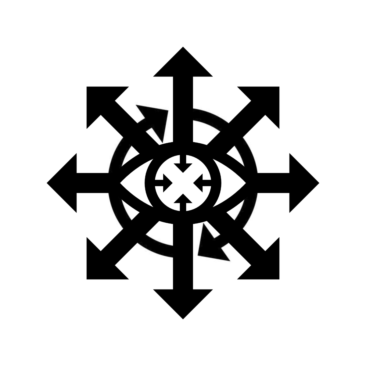 The idea behind the logo is to represent concepts that tie into my "view of the bigger picture" i suppose you could say. The chaos symbol represents the universe and its entropy surrounding us, in direct opposition to the eye inside of it, representing a human. Within the eye, the inner arrows make for an inverted chaos symbol, representing ego and sense of self in relation (and opposition) to the rest of the universe. The human lies at the center of a loop, representative of cycles of its own perception (pattern recognition) that let it navigate the inherent chaos of the world.